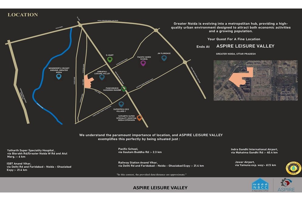 The project is located in Noida Extension’s fast-growing residential hub. With direct connectivity to major roads, IT parks, schools, and malls, AU Aspire Leisure Valley ensures a smooth and convenient lifestyle for families and working professionals.